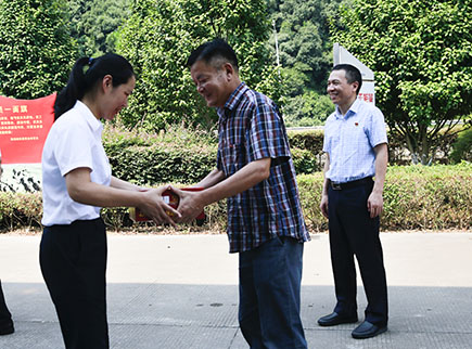 圖為公司副董事長、總經(jīng)理張建平給內(nèi)環(huán)路一線人員送上消暑慰問品