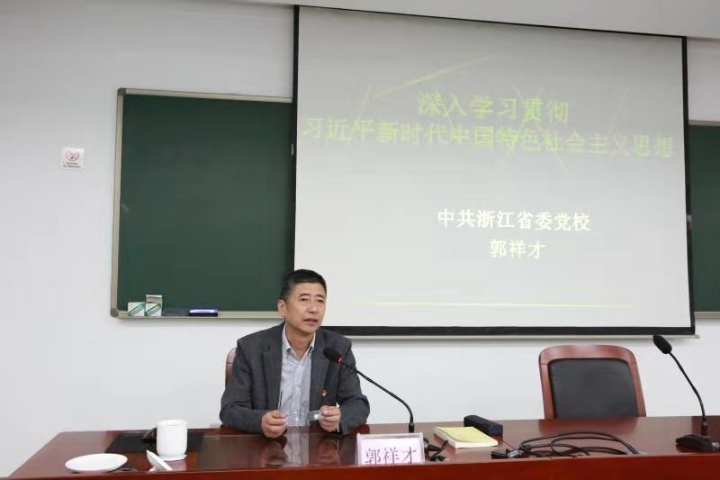 圖為省委黨校哲學(xué)教研部原主任、教授郭祥才以《習(xí)近平新時(shí)代中國特色社會(huì)主義思想》為題授課