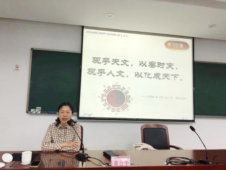 圖為浙江省科技廳教育培訓(xùn)中心副主任戴銀燕以《習(xí)近平科技創(chuàng)新及浙江實(shí)踐》為題授課