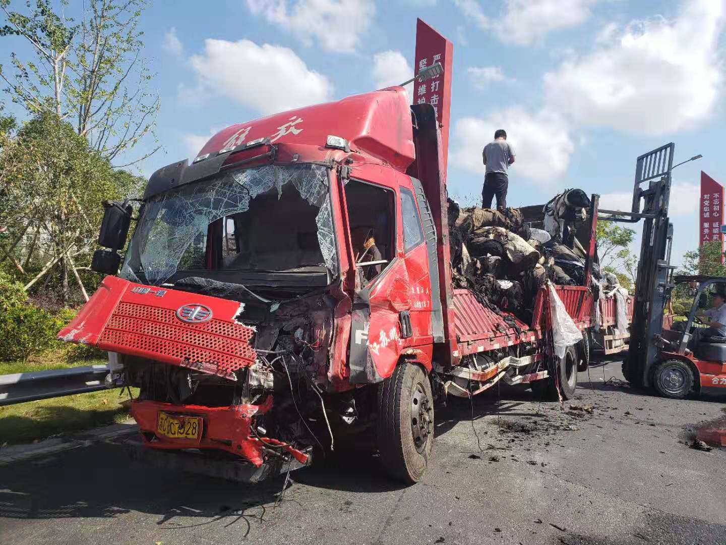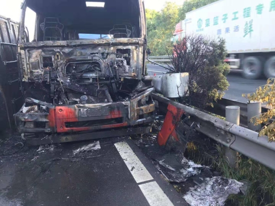 9月20日凌晨5點(diǎn),溫向1956距離臺(tái)州南不到1公里的地方,一輛大貨車追尾另外一輛貨車。本來(lái)是一起普通的交通事故,可是大貨車車頭瞬間起火引燃了另外一輛貨車上的布匹,火光沖天,一時(shí)火勢(shì)無(wú)法控制。