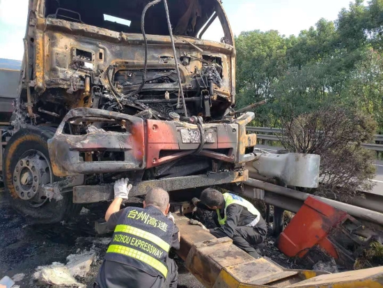 大火在現(xiàn)場(chǎng)留下了幾乎成為殘骸的兩輛車、滿地的油污、車輛碎片、燒剩下的布匹,一股刺鼻的臭味一公里外都聞得到。油污讓路道變得又膩又滑。更為嚴(yán)重的是,隨著時(shí)間的推移,從事故點(diǎn)開(kāi)始,堵車開(kāi)始一公里一公里的蔓延,幾乎快到了臺(tái)州收費(fèi)所。