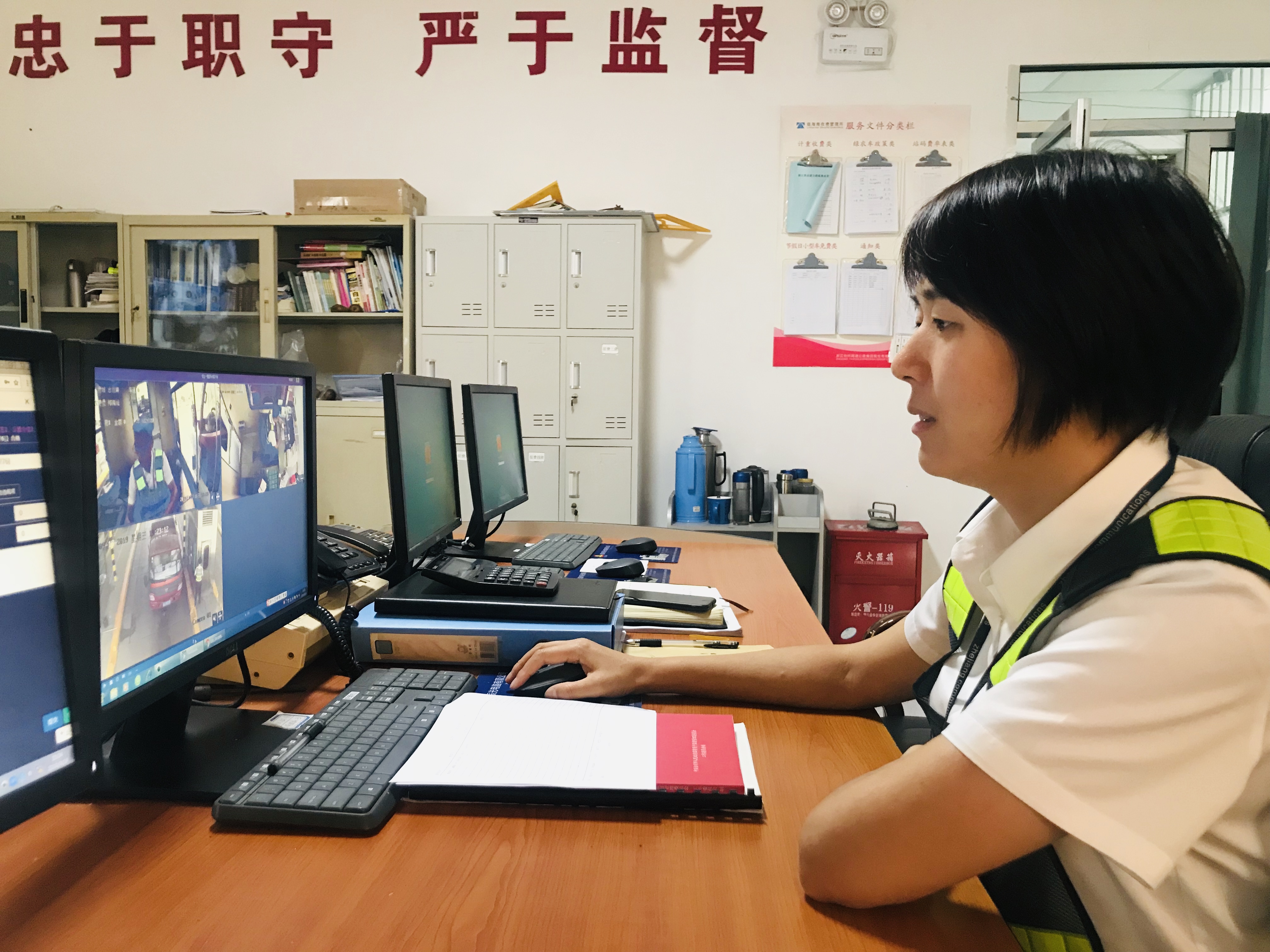 這個(gè)中秋假期,很多司機(jī)以為是免費(fèi)通行,在高速入口處沒(méi)有領(lǐng)卡,以致出口的時(shí)候卡內(nèi)無(wú)信息。溫嶺西收費(fèi)所監(jiān)控室里,監(jiān)控稽查員沈燕娜正在為出口卡無(wú)信息的車(chē)輛忙活著。作為一名監(jiān)控員,為了司乘人員快速通行,沈燕娜逐個(gè)且很有耐心地打電話問(wèn)其入口站,一忙起來(lái),她都忘記了自己是個(gè)懷孕六個(gè)月的孕婦。