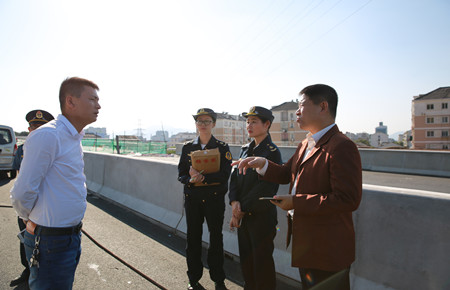 10月27日,黃巖區(qū)公路局到內(nèi)環(huán)路(黃巖段)開(kāi)展涉路施工監(jiān)管。市政公司相關(guān)負(fù)責(zé)人陪同檢查。